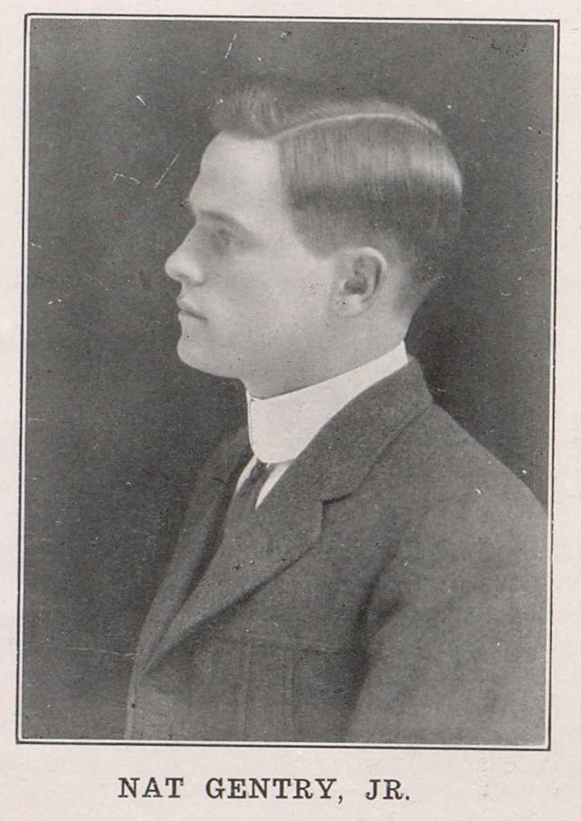Nathaniel “Nat” A. Gentry, Jr. was born on September 30, 1896, in Texas to Nathaniel “Nat” Asberry Gentry and his wife Sarah Elizabeth “Lizzie” Ferrell. Nat graduated from Tyler High School in 1916. He enlisted in the Navy on May 23, 1917 and was discharged on March 21, 1919. He died on August 29, 1949 in Tyler Texas and is buried in Rose Hill Cemetery, Tyler, Smith County, Texas.