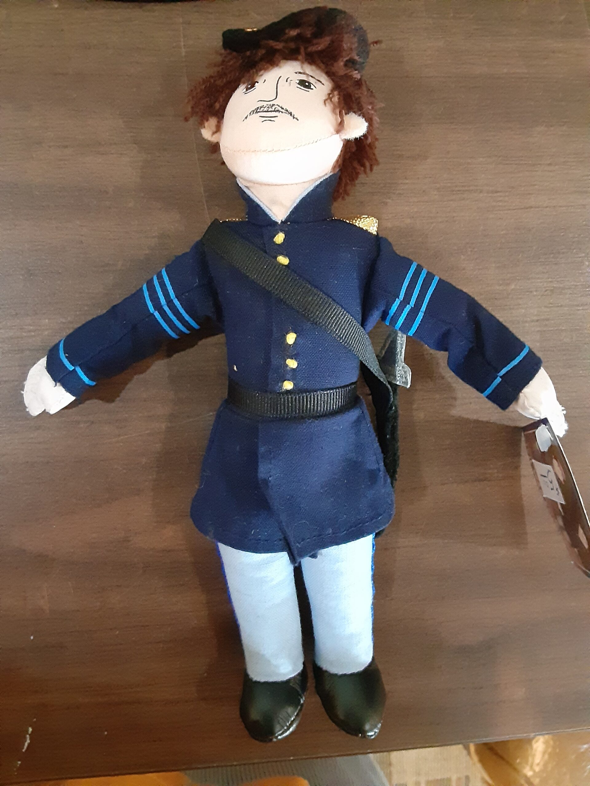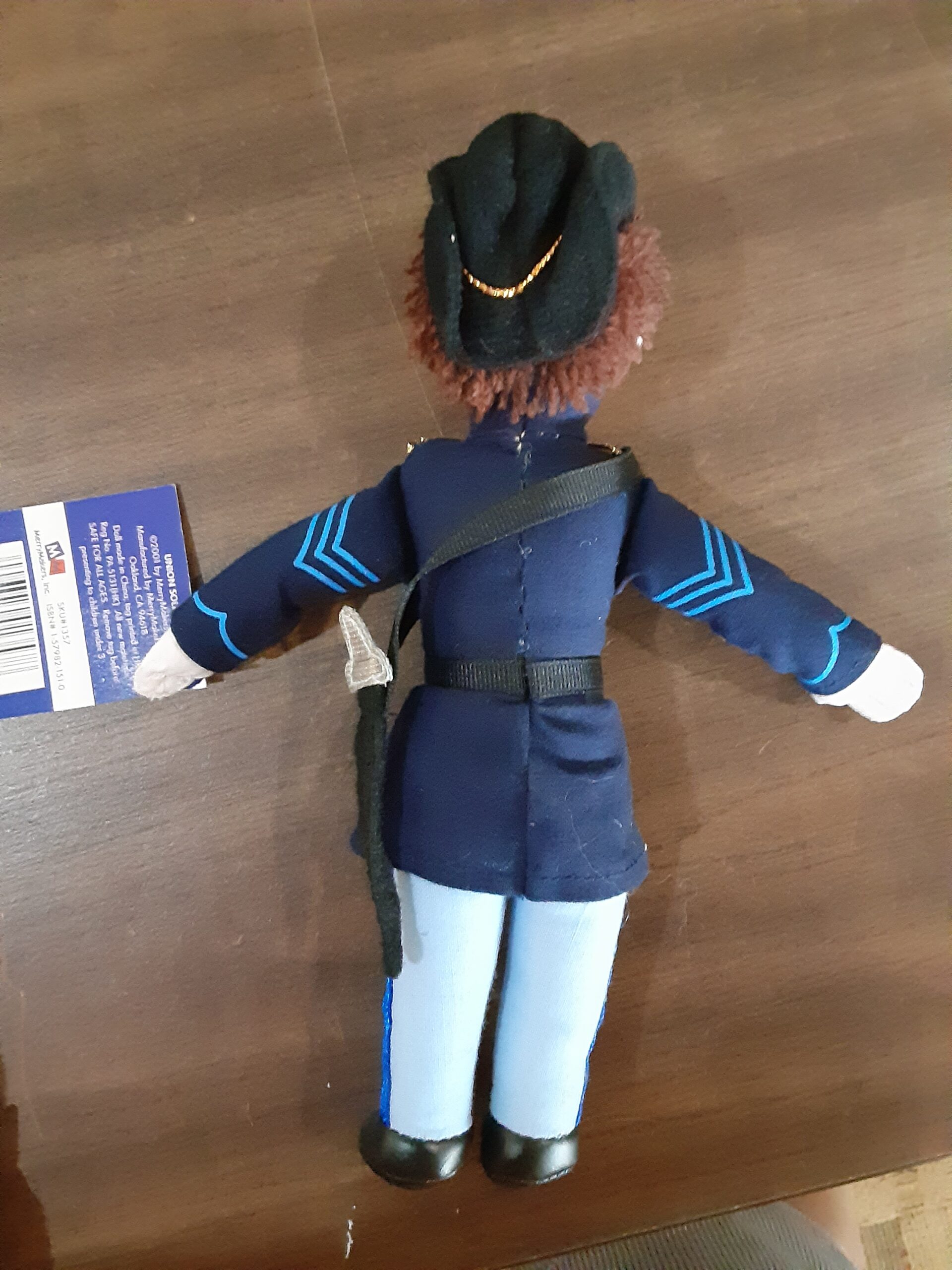 This is a doll that looks like a Union Soldier in his dark blue uniform, it measure 8″ tall by 3″ wide.