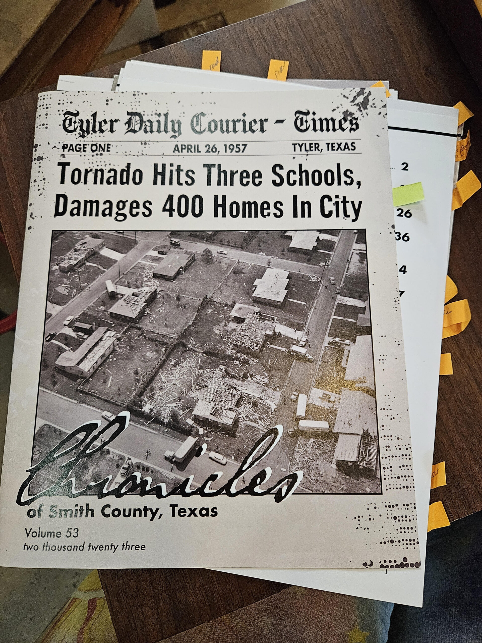 • Twister! The Tyler Tornado, April 27, 1957, by Vicki Betts; pages 2-17
