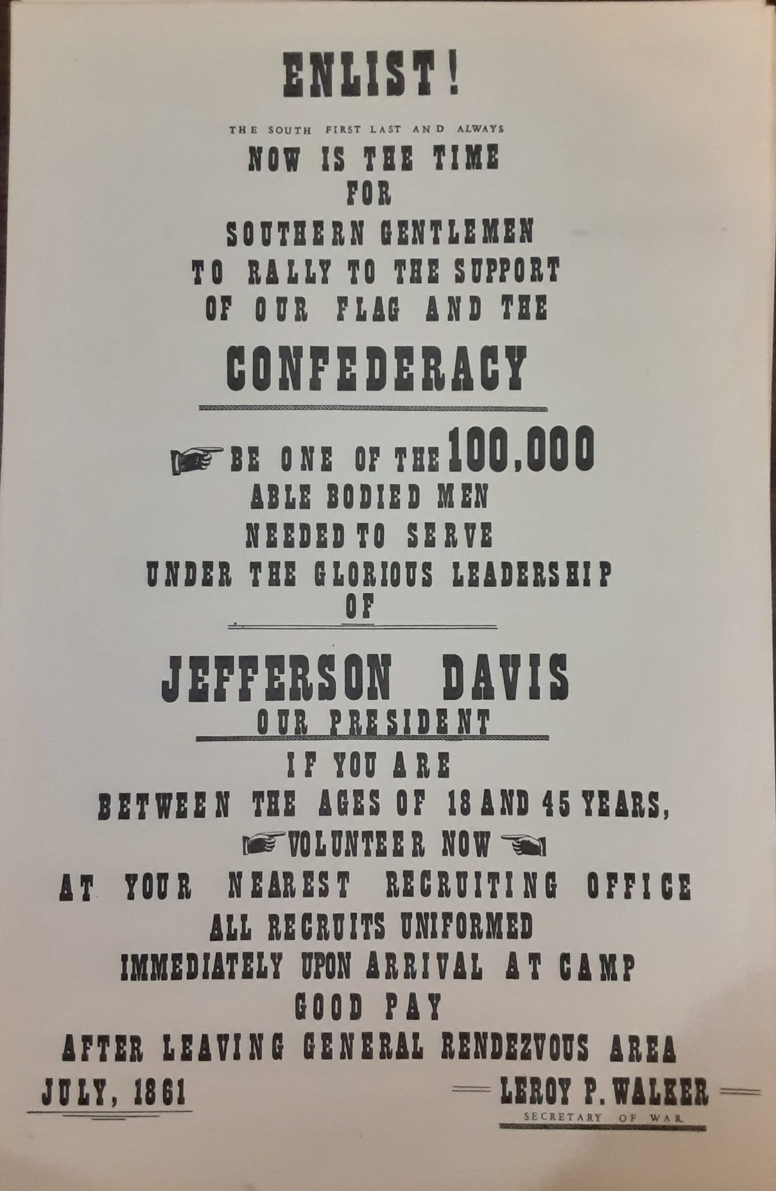 Reproduction of an Enlistment Poster for the Confederate Army