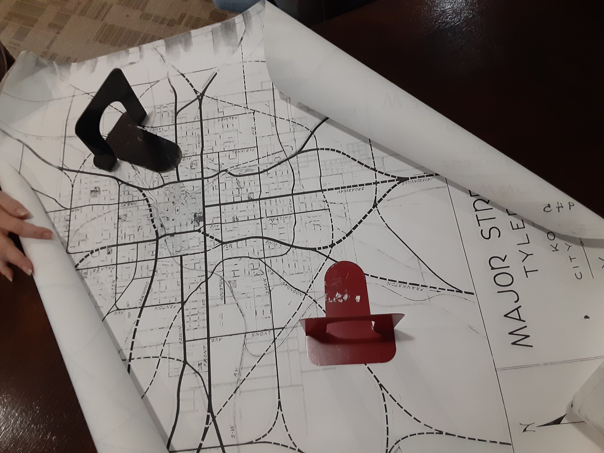 A map showing the major street systems of Tyler in 1945 when the map was first published. The map is 38″ x 31″.