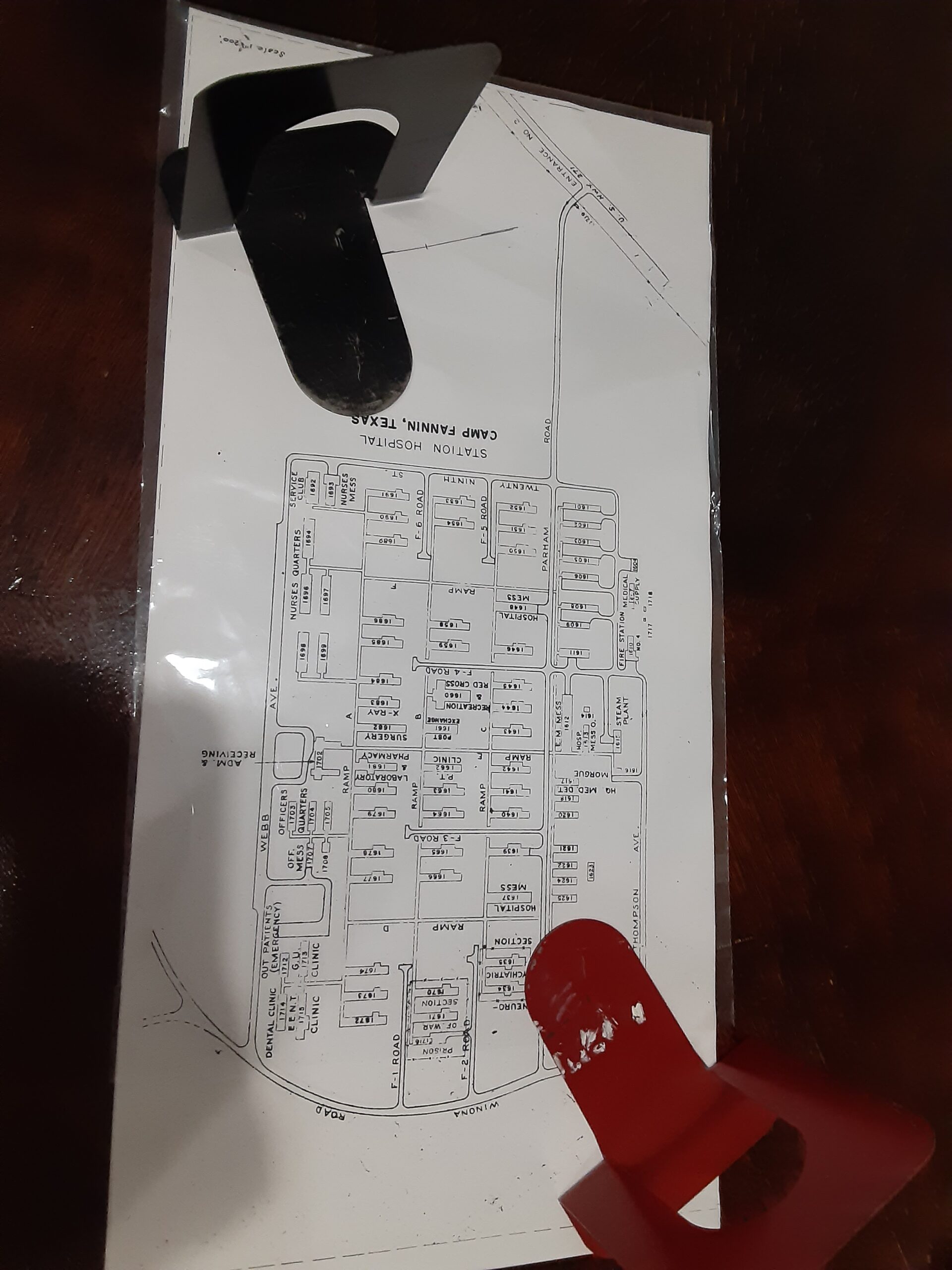 A map of Camp Fannin Station Hospital with the details drawn out complete with streets and surrounding buildings. Has a legible title.